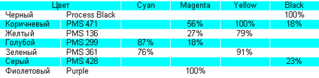 Для получения необходимых цветов рекомендуется использование следующих красок и определенный порядок печати.