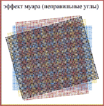 Для устранения муара при традиционной четырехкрасочной печати карт используется определенный угол поворота для каждой сетки. На правильной стохастической сетке точки распределены бессистемно, поэтому нежелательный муар не возникает.